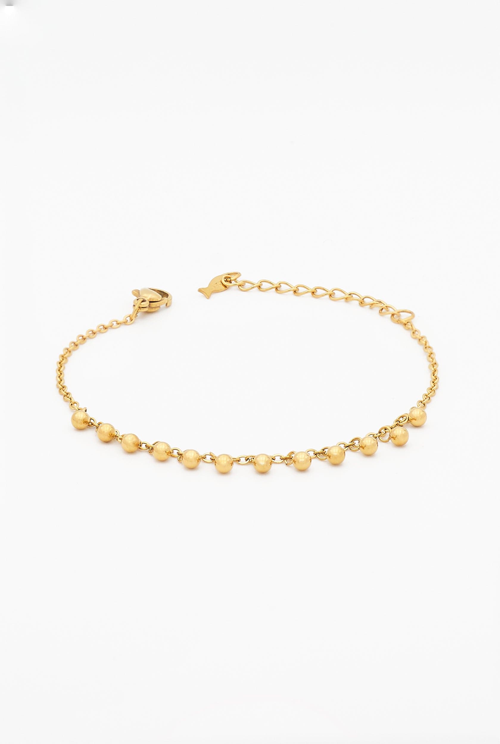 La pulsera de bolitas colgantes Maiwen es súper bonita, es un detalle que quedarás bien por que acertarás seguro. Si estás pensando en una pulsera para tí para no quitártela jamás, ésta es tu mejor opción, es waterproof, no se le va el color dorado y las bolitas combinan con cualquier otra pulsera de nuestra colección, por ejemplo la pulsera Carmen.