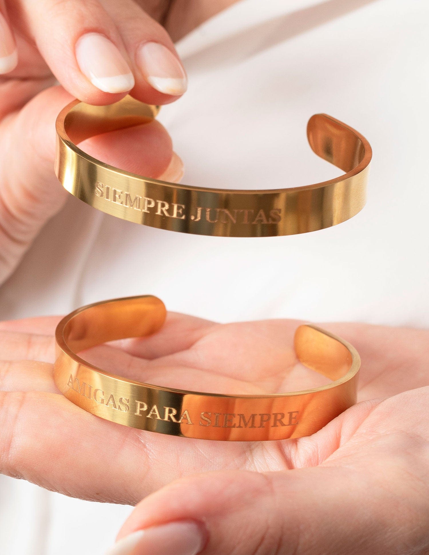 La pulsera esclava ancha personalizable tipo esclava es ideal para regalar o llevar contigo. Un recuerdo único para regalar a una persona en concreto o hacer la misma pulsera con tus amig@s, familia o pareja.