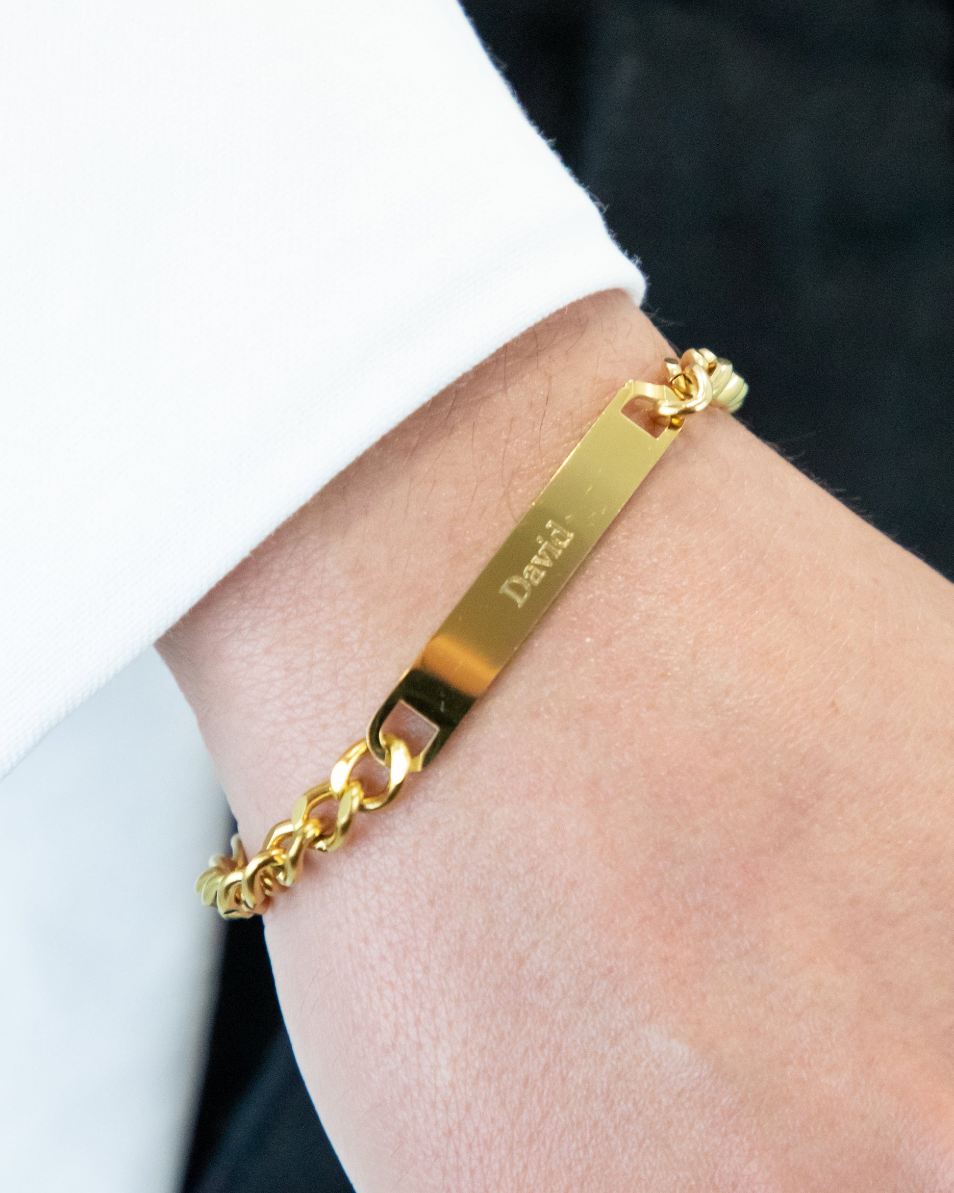 ESCLAVA HOMBRE DORADA DE ESLABONES GRABADA