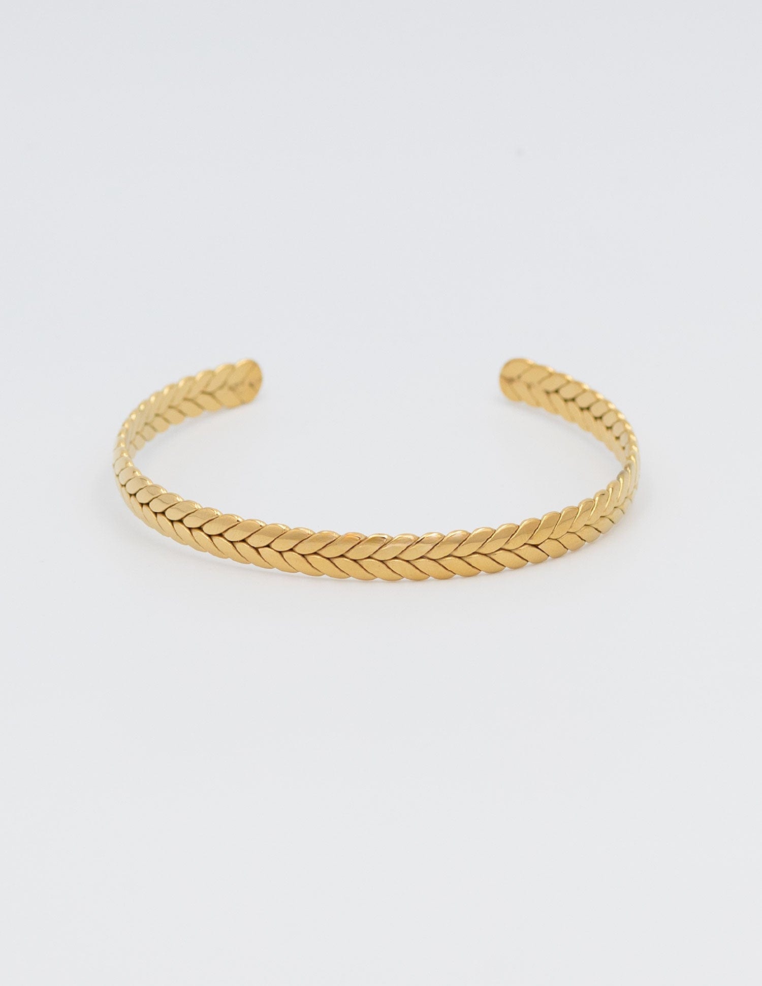 Pulsera rígida muy flexible, trenzada efecto serpiente, un diseño clásico, ideal para llevarla sola o combinarla con otras pulseras finas de nuestra colección. Se ajusta muy bien a la muñeca y es muy cómoda para el día a día.
