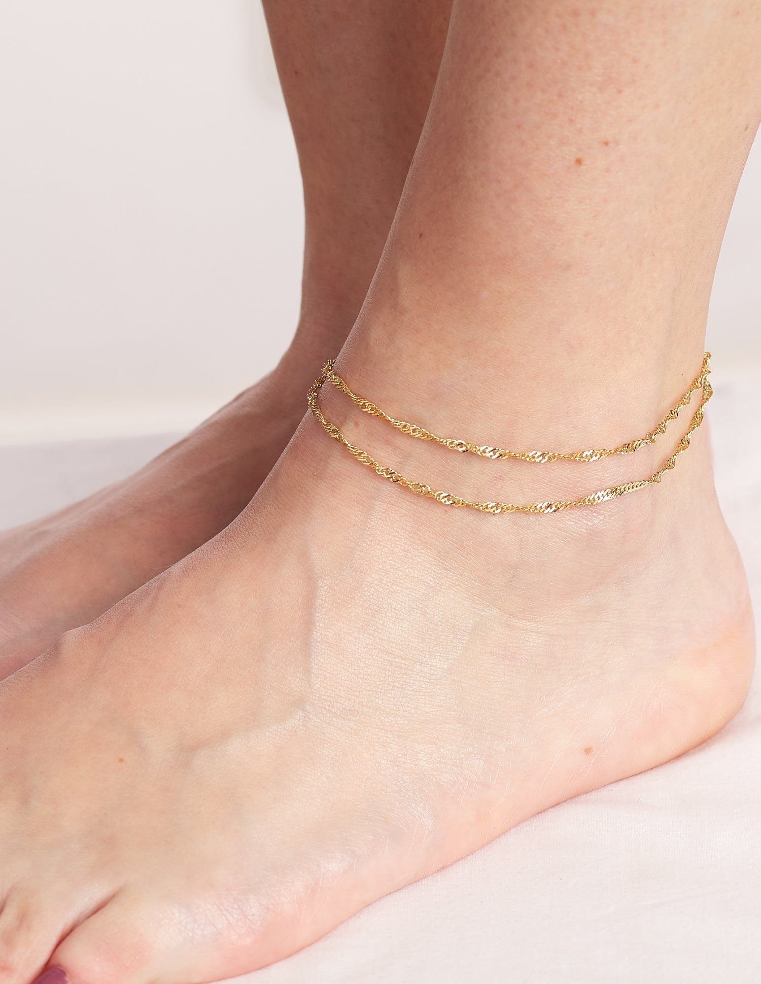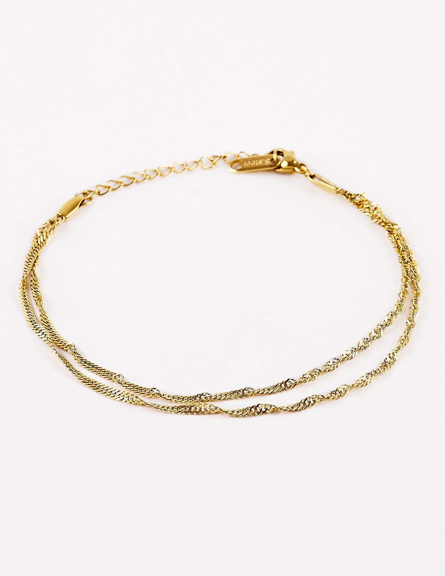 La tobillera de acero Bruna, ya tiene su propia combinación, y es que es doble, con lo cuál queda súper bonita en el tobillo, parece que llevaras dos. Esta tobillera se convertirá en una de tus preferidas esta temporada de primavera –verano. Y sí, se puede mojar!, No, no se pone fea!